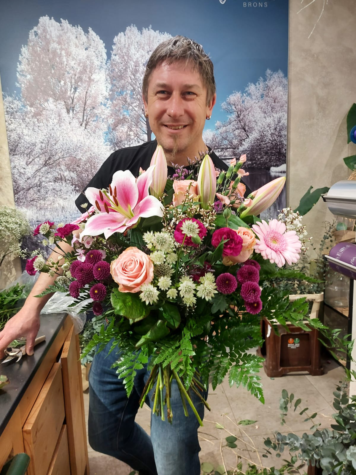 Mit Flora Brons können Sie Glückwünsche und Blumengrüße ganz unkompliziert überbringen lassen. Wir stellen den Strauß in unserem Blumengeschäft wunschgemäß für Sie zusammen und verschicken ihn frisch zum vereinbarten Termin. Bestellen können Sie Buketts aller Art. Unser Blumenversand-Service ist die ideale Lösung, wenn Sie Freunden oder Familie zum Geburtstag gratulieren oder einfach jemanden den Tag versüßen möchten. Wir haben die perfekte Kreation für jeden Anlass!